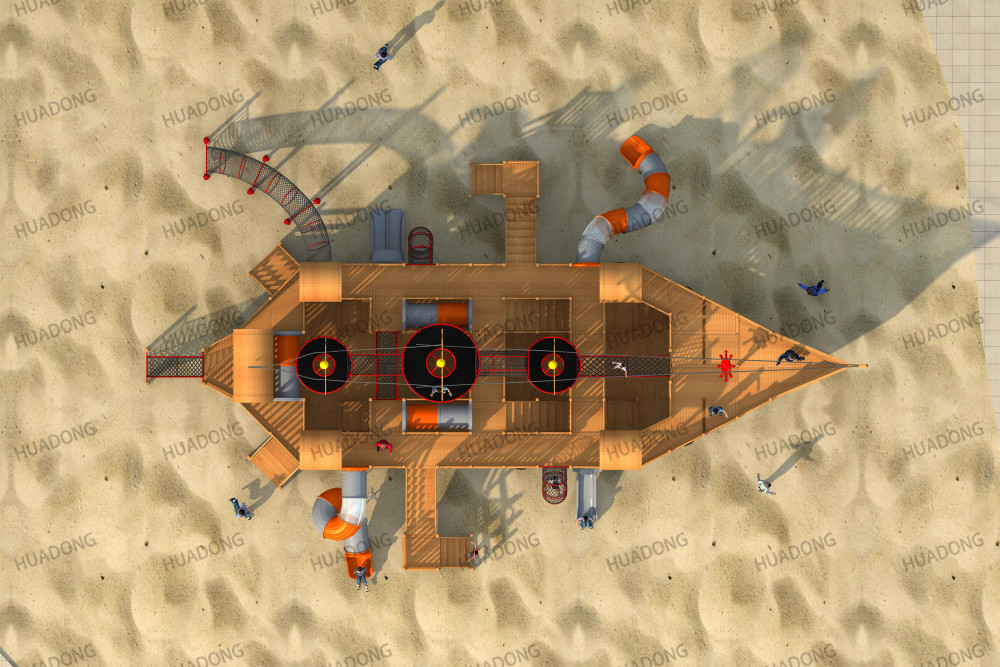 木质海盗船组合滑梯的设计以大自然为主题,融合了船体、桅杆、甲板等元素,外观新颖、结构牢固。它集攀爬、滑梯、秋千等功能于一体,旨在锻炼孩子的平衡协调能力和自我保护意识,同时培养探险精神。