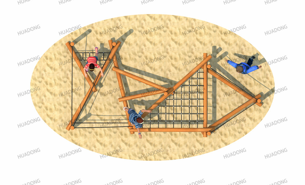 木质拓展设施采用天然木材打造,设计注重安全与挑战并重。通过悬挂桥、攀爬网、平衡木等多样化的障碍元素,旨在提升参与者的体能、平衡感及团队协作能力,同时享受亲近自然、挑战自我的乐趣。