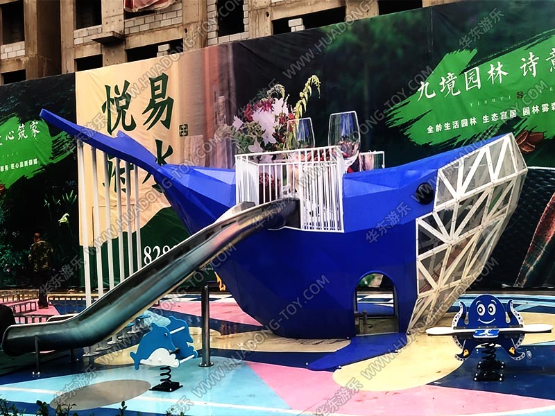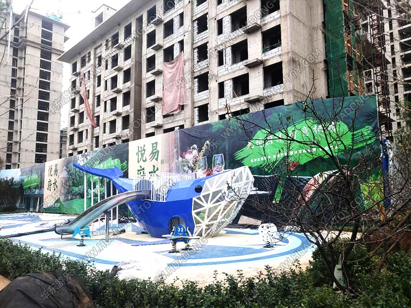 易水悦府房地产项目是一个综合性的休闲、娱乐、生活为一体的生活服务器区,在这里主要为小区业主提供一个可以互动、交流、玩耍的场所,该项目采用了leyu.com乐鱼游乐自主设计的大鲸鱼滑梯为主,附加摇摇马等游乐设施,整个项目设计完美,实用性强,深受业主们的喜爱。