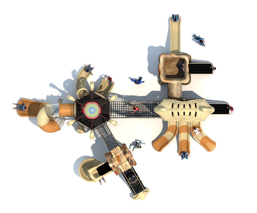 • 远古部落系列虽然名字带着“古”字,但是在设计细节处无不透露着艺术与创造性。当孩子在仿真树中探索、冒险、嬉戏游玩时,就像穿越到古老的神秘森林;粗略的树干包围着他们,头顶是高耸的茅草屋,触感真实的枯枝走廊,还有随处可见的小动物们…… 远古部落系列旨在打造区别于其他系列带给孩子们的新鲜感,让孩子们找设计者打造的神秘世界中获得冒险的乐趣。