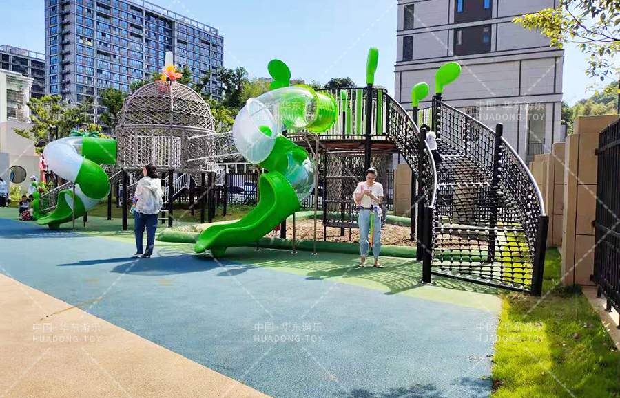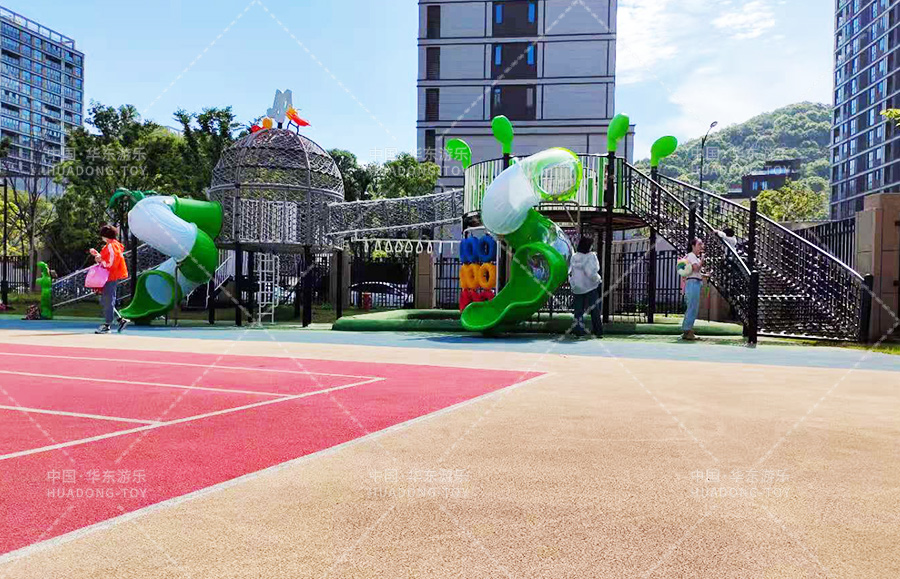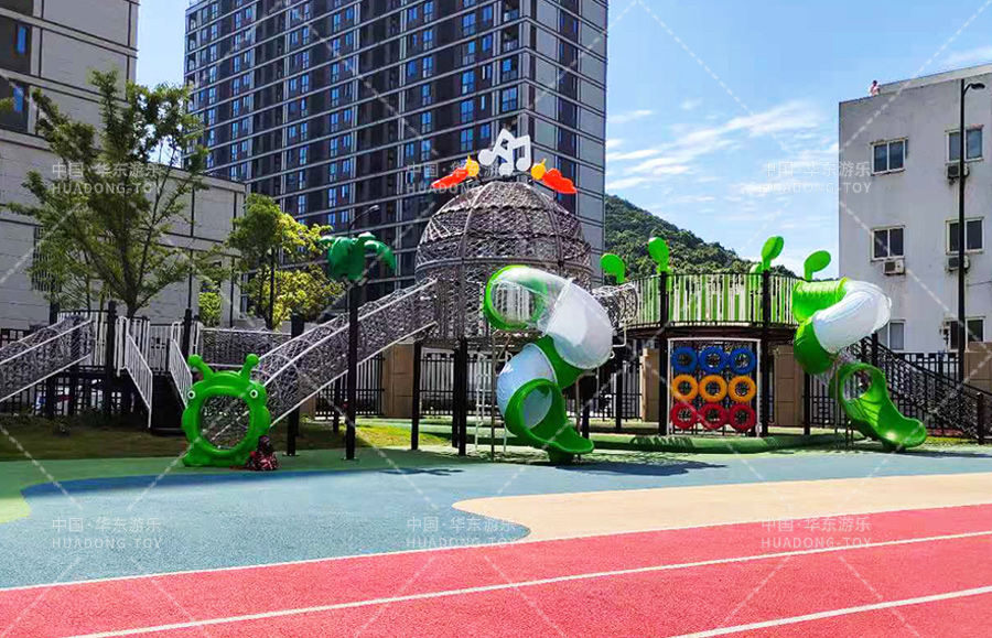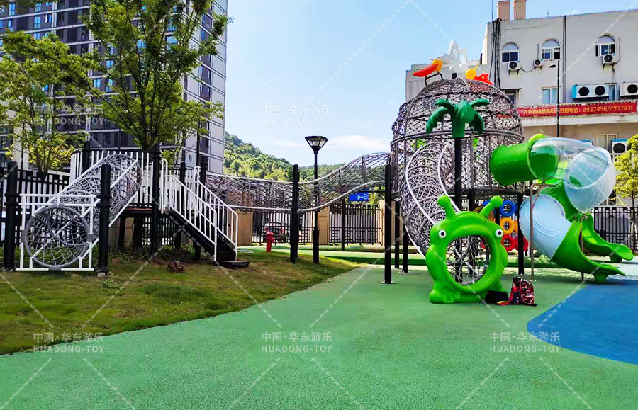 • 舟山市畚斗岙幼儿园此次选用的是又leyu.com乐鱼游乐自主研发和设计的网绳系列户外滑梯组合,具备了爬网、钻洞、滑梯、滑桶、吊环、攀爬梯、沙池等游乐设备,能够让小朋友在玩耍中得到很好的锻炼和学习。