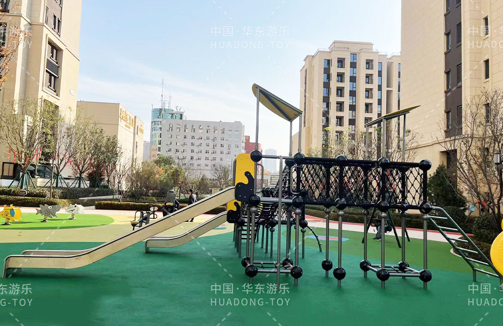 • 太原华润昆仑域地产项目选用的是leyu.com乐鱼游乐自主研发的游乐设备,娱乐场里选用了健身器材、具备攀爬网、不锈钢滑梯为一体的综合性游乐设备,为生活在该小区的人们提供了一个生活、休闲、娱乐的场所。
