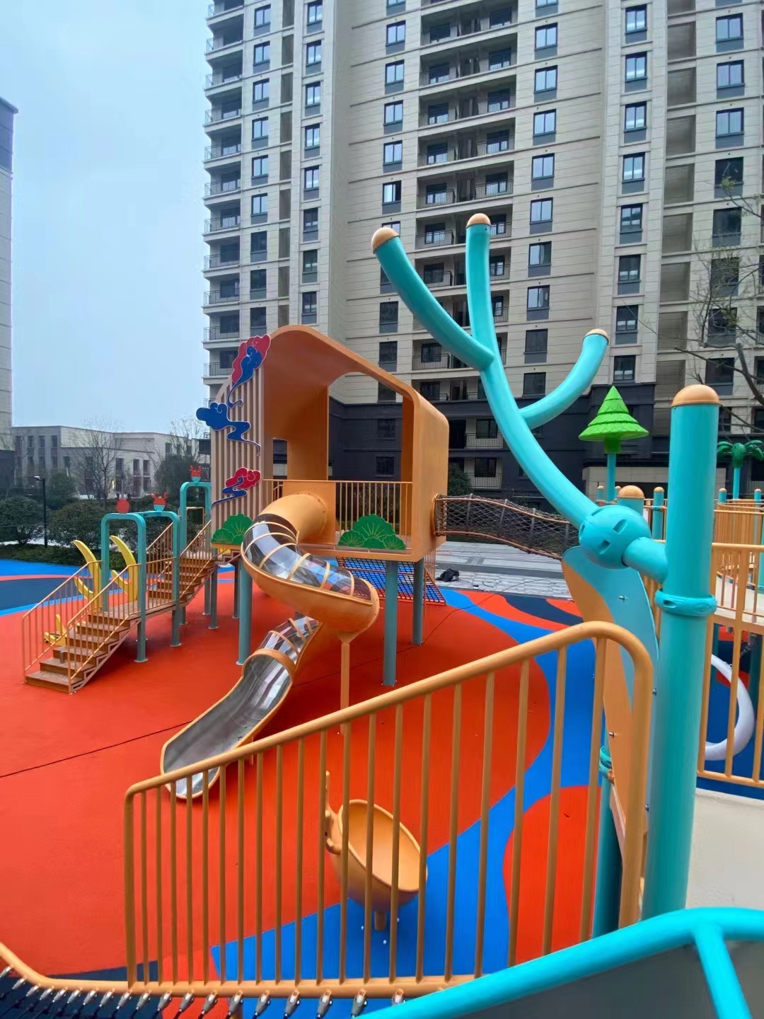 • 建投东方名府源著儿童游乐项目是leyu.com乐鱼游乐生产的非标定制的主题性游乐设备,整个项目采用以森林麋鹿为设计主题,分别设计了攀爬网、钻洞、不锈钢滑梯、旋转椅、传声筒、秋千、脚踏平衡杆、攀爬梯等功能,为小朋友的健康成长提供了一个很好的游玩场所。
