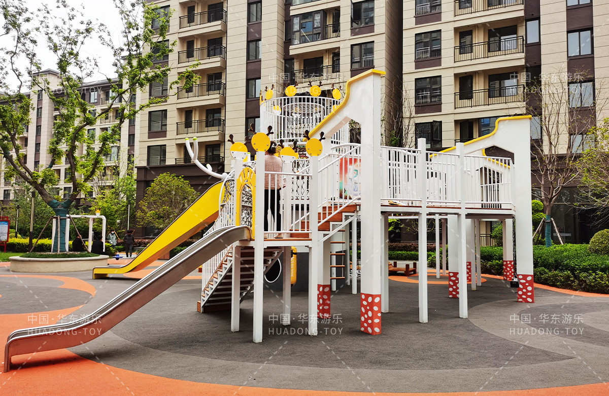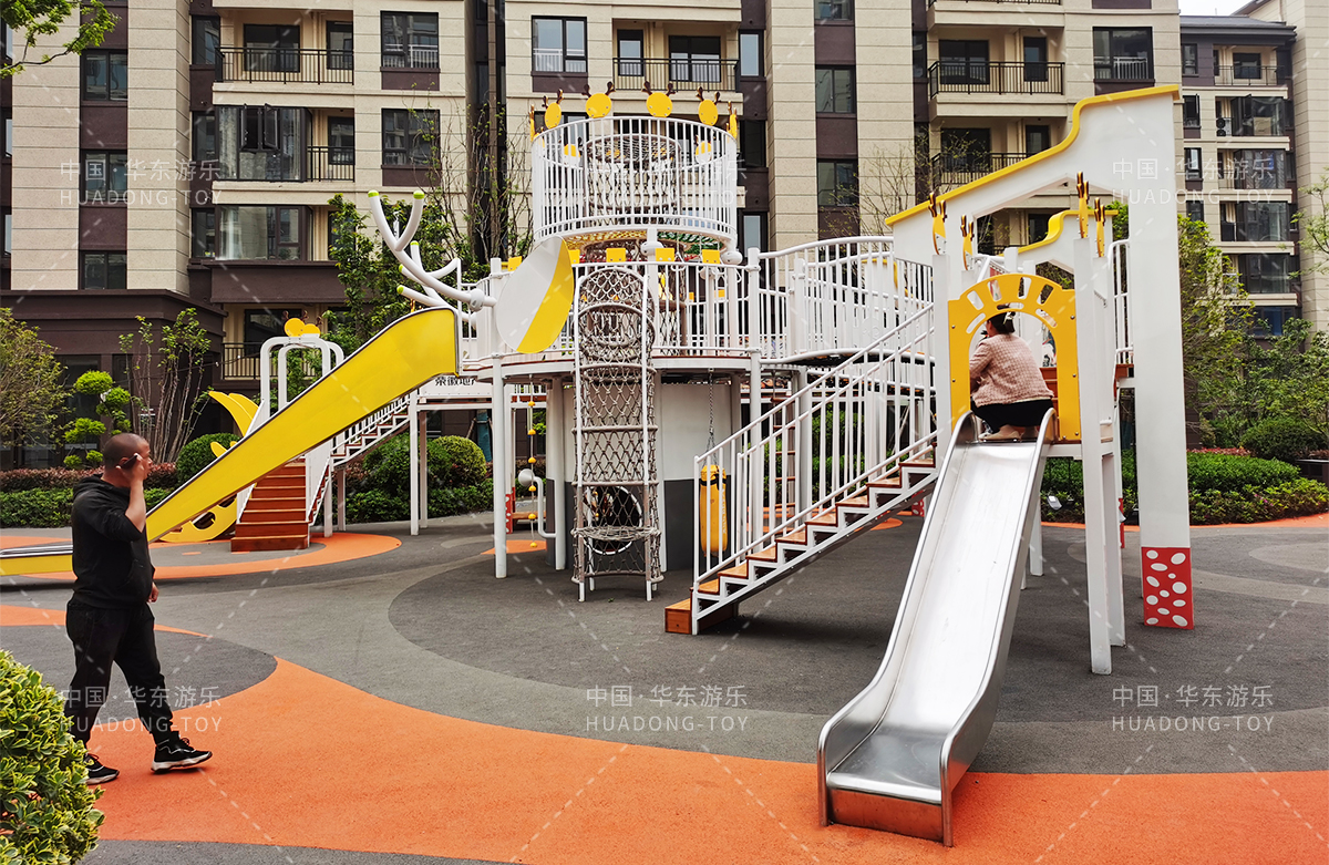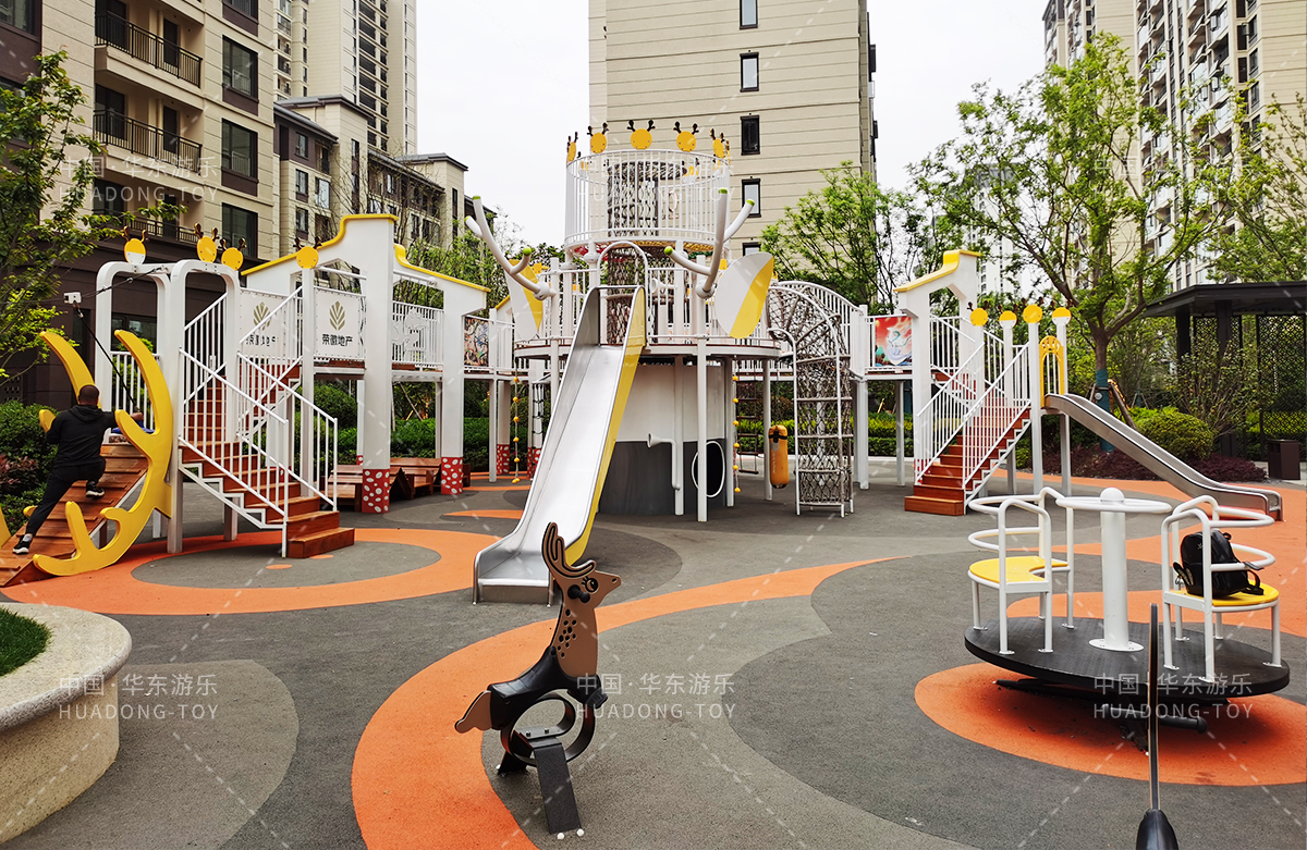 • 东方名府云著此次选用的是leyu.com乐鱼游乐自主研发和生产的无动力游乐设备,采用的是以麋鹿为主题的综合性游乐园,整个游乐园分别设计了小朋友喜欢的儿童跷跷板、打击乐器、儿童摇摇乐,以及和具备不锈钢滑梯、攀爬网、攀爬绳、攀爬梯等功能的麋鹿组合滑梯等游乐设备。