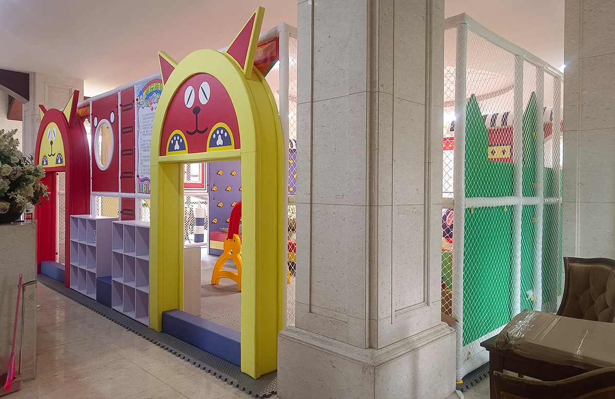 为了更好的让孩子们有一个玩耍的场所,该项目选用了海洋球、攀爬墙、旱雪滑梯、儿童秋千、儿童蹦床、游戏迷宫等功能为一体的室内淘气堡儿童乐园,为小朋友的健康发展提供了保障。