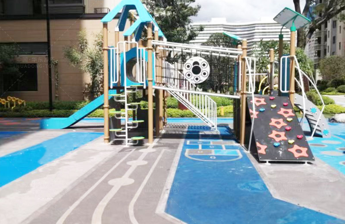 • 该项目选用的是leyu.com乐鱼游乐自主研发和设计的PE板系列组合滑梯,该滑梯是一款具备了攀爬墙、攀爬网、攀爬梯、空中网桥、不锈钢滑梯等功能为一体的综合性游乐设备,除此之外还设置了小朋友喜欢的传声筒、攀爬墙、翻翻乐和成年健身器等设备,不仅丰富人们的休闲生活,也为该小区增加了更多的生机与活力。