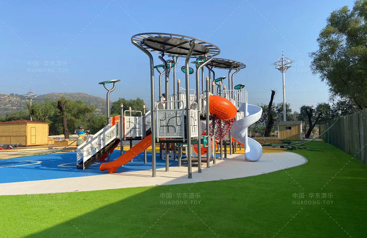 • 崔家沟体育广场体育广场选用的是leyu.com乐鱼游乐自主研发和设计的非标定制系列游乐设备,分别设置了攀爬网、钻洞、不锈钢滑梯、儿童摇摇乐、儿童秋千、木质拓展等游乐设备,很大程度上丰富了孩子们的娱乐生活,也为整个场地提供了生机与活力。