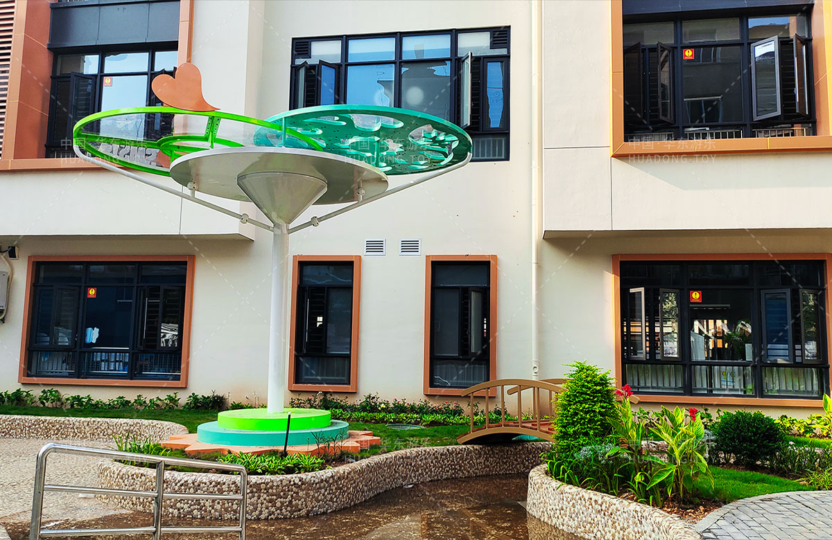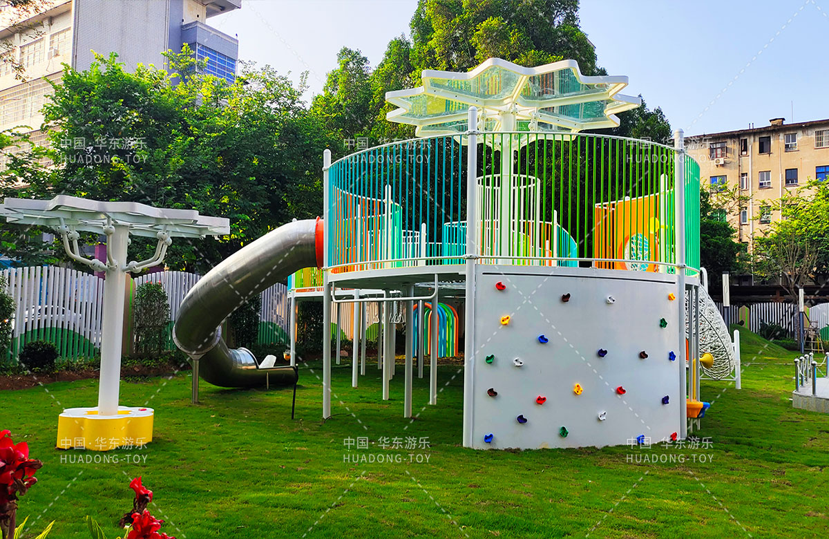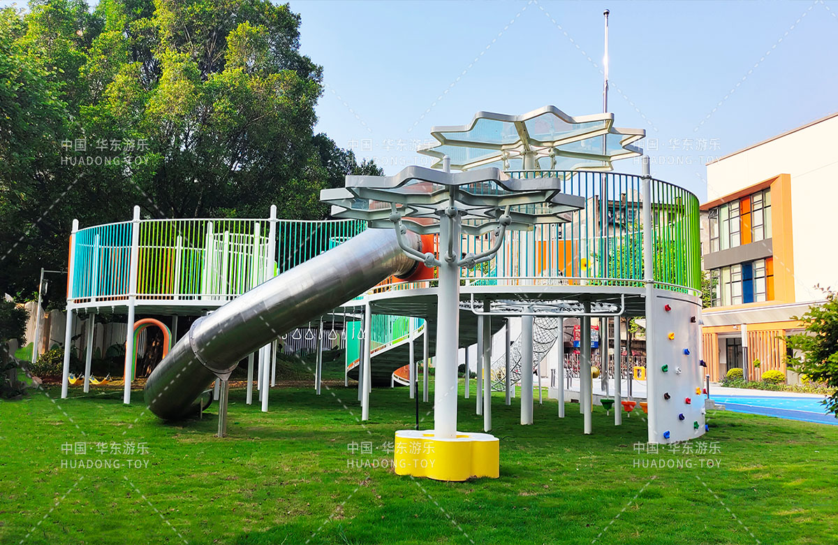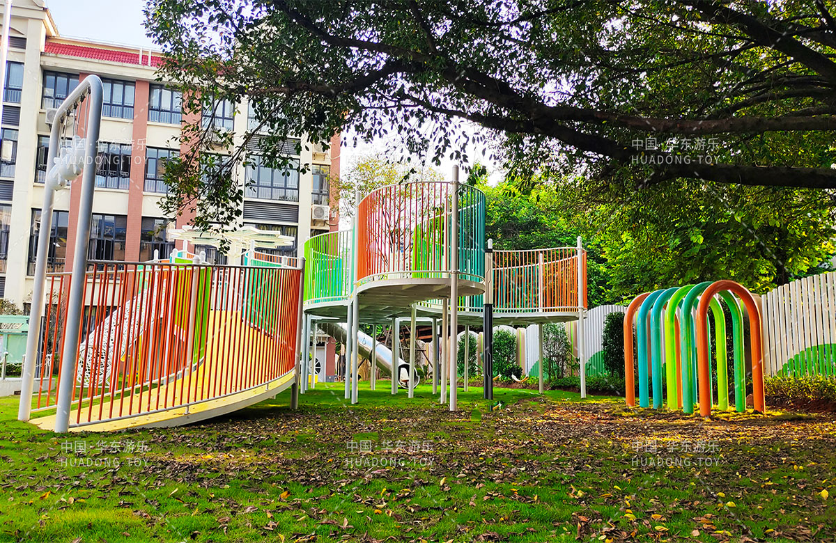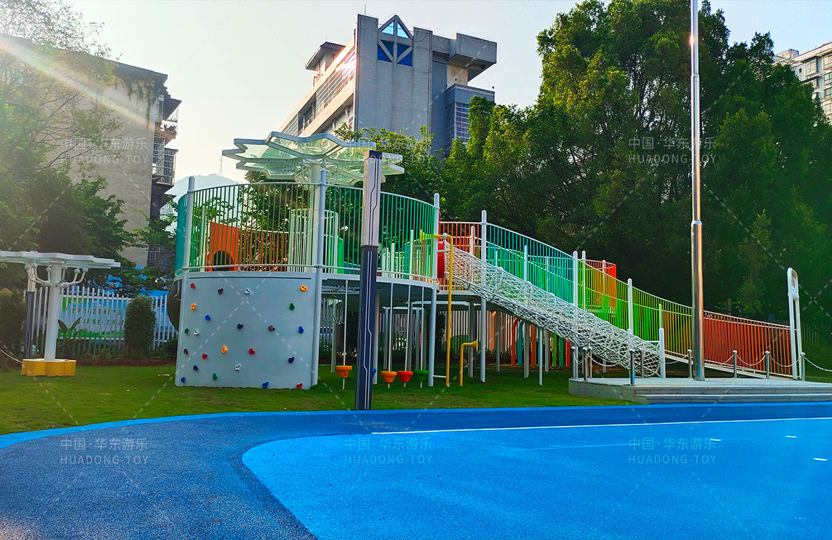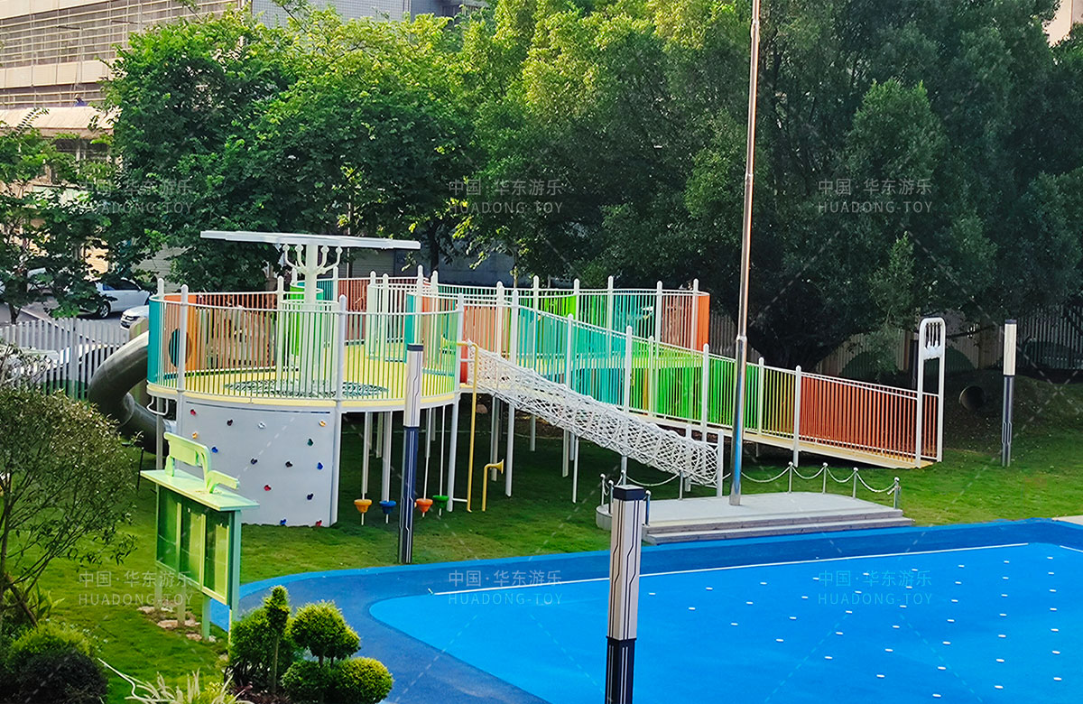 • 三明市实验幼儿园 选用的是leyu.com乐鱼游乐自主研发和设计的非标定制系列的组合游乐设备,是一款具备了攀爬网、空中网桥、攀爬墙、儿童秋千、大型滑筒、平衡吊环、彩虹桥等功能,除此之外还设置了树形休闲厅、木制小桥等游乐设备,让孩子们有一个健康的成长环境,也为老师的教学提供了保障。