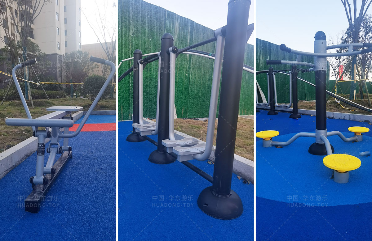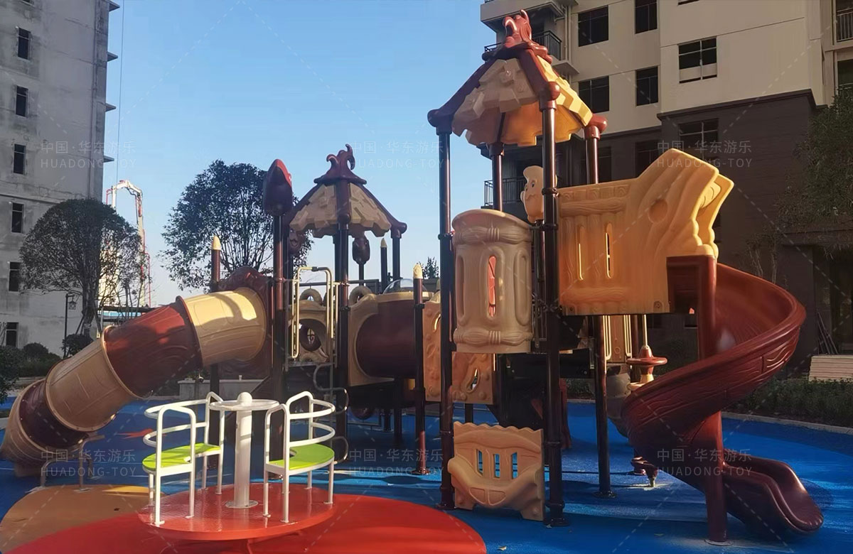 湖北黄冈市浠水县星河荟小区选用的是leyu.com乐鱼游乐自主研发和设计的魔法屋系列组合滑梯,同时为了更好的满足全龄人群的健身和需求还配备了漫步机、太极手推器、吊环等户外健身器,不仅仅满足了孩子们的游玩需求,也为当地的人提供了一下休息、娱乐、健身、遛娃的场所。