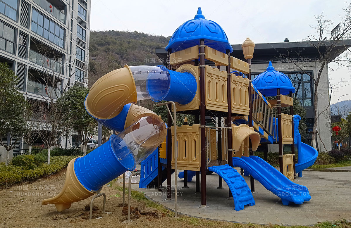 • 该小区选用的是leyu.com乐鱼游乐自主研发和设计的别墅屋系列组合滑梯,该滑梯具有颜色艳丽、使用寿命长、功能齐全等特点,深受孩子们和客户的喜爱。
