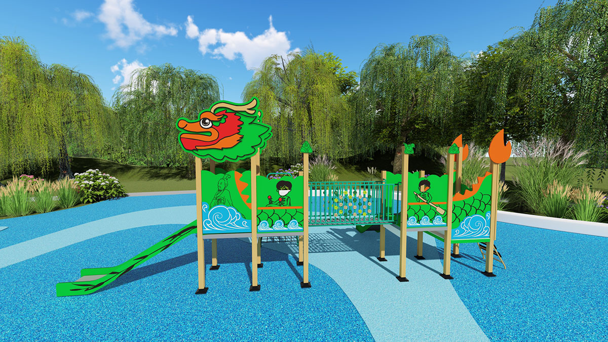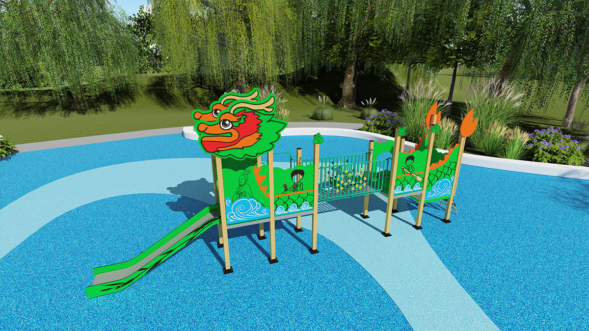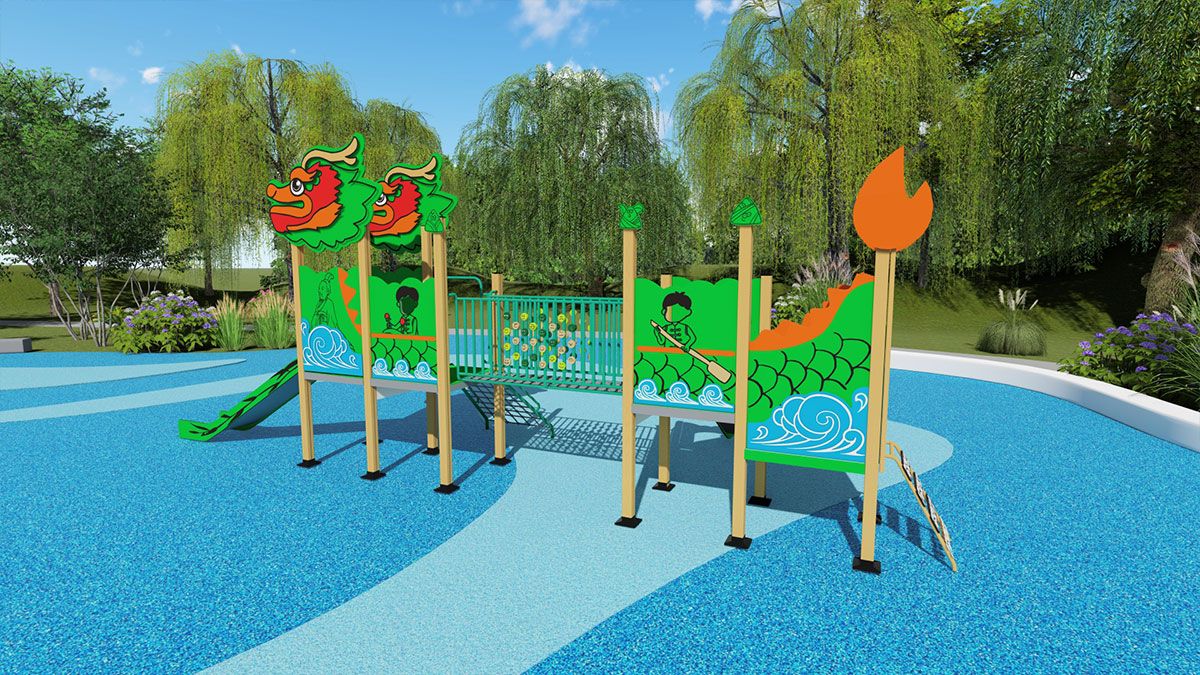 新品说明:“龙舟乐园”是一款集趣味性与教育性于一体的儿童游乐设施。它巧妙地将龙舟文化融入设计中,不仅提供了攀爬网、滑梯、攀爬梯等经典游乐元素,还创新地加入了翻翻乐和角色扮演功能。孩子们在玩耍的同时,可以体验龙舟竞渡的激情 ,感受中国传统文化的魅力。